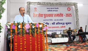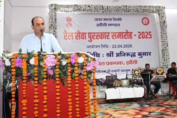 झांसी 22 अप्रैल 2026। उत्तर मध्य रेलवे के झांसी मंडल में आज “रेल सेवा पुरस्कार समारोह–2025” का भव्य आयोजन किया गया। इस अवसर पर मंडल रेल प्रबंधक श्री अनिरुद्ध कुमार द्वारा उत्कृष्ट कार्य करने वाले रेलकर्मियों एवं विभागों को सम्मानित किया गया। इस सुअवसर पर मंडल रेल प्रबंधक ने कहा कि यह समारोह केवल उपलब्धियों…