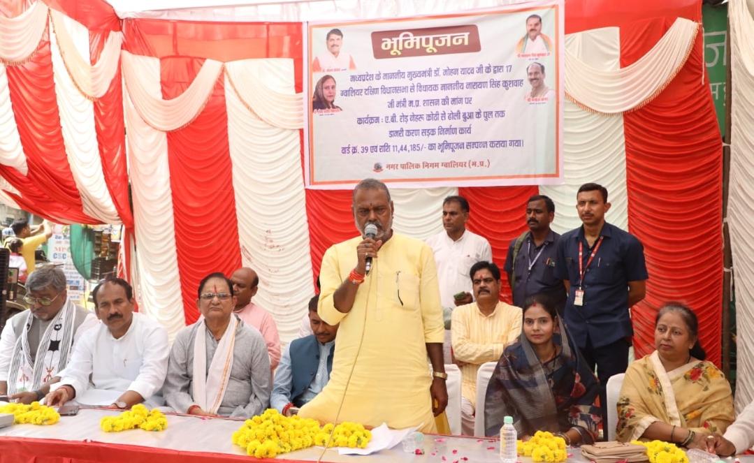 ग्वालियर 29 सितम्बर 2025/ कम्पू एवं लश्कर क्षेत्र में बनने जा रहीं बड़ी-बड़ी डामरीकृत सड़कों का सामाजिक न्याय, उद्यानिकी एवं खाद्य प्रसंस्करण मंत्री श्री नारायण सिंह कुशवाह ने भूमिपूजन किया। मुख्यमंत्री डॉ. मोहन यादव ने मंत्री श्री कुशवाह की पहल पर इन सड़कों के निर्माण के लिये कायाकल्प योजना के तहत 4 करोड़ 68 लाख 22 हजार रुपए से अधिक धनराशि उपलब्ध कराई है। सड़कों के भूमिपूजन कार्यक्रमों श्री कुशवाह ने यह भी भरोसा दिलाया कि ग्वालियर दक्षिण की विभिन्न बस्तियों में जल्द ही एक दर्जन अन्य सड़कों एवं आधा दर्जन सामुदायिक भवनों के निर्माण के लिये भी भूमिपूजन किया जायेगा।