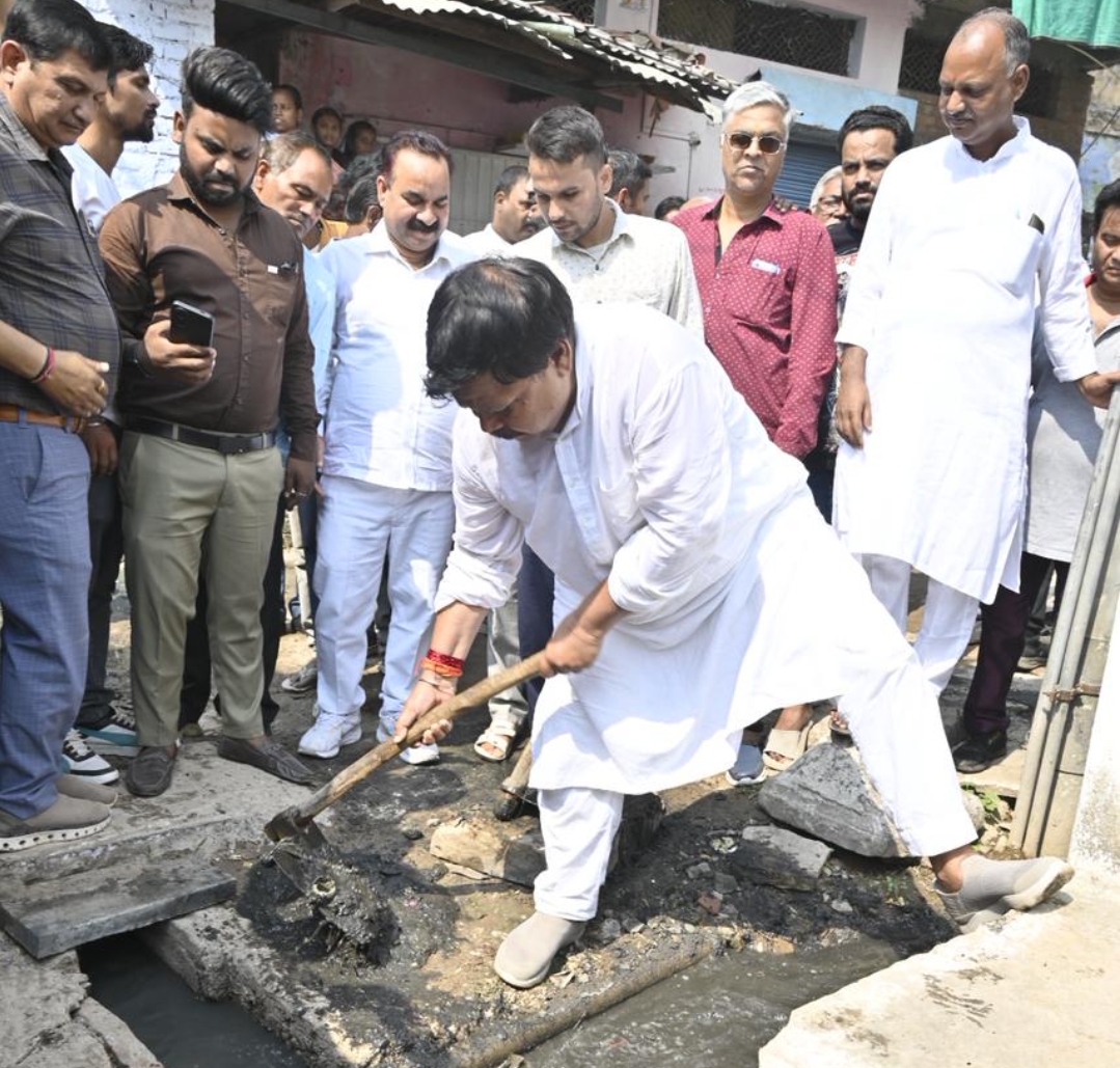 भूमि पूजन के उपरांत ऊर्जा मंत्री श्री तोमर ने उपनगर ग्वालियर के रमटापुरा क्षेत्र में सड़क, सीवर एवं विद्युत एवं सफाई व्यवस्था का निरीक्षण किया। स्थानीय नागरिकों की आवश्यकताओं को ध्यान में रखते हुए संबंधित अधिकारियों को आवश्यक दिशा-निर्देश प्रदान किए, ताकि क्षेत्र की मूलभूत सुविधाओं में और सुधार हो सके। निरीक्षण के दौरान उन्होंने स्वयं नाले की सफाई कर स्थानीय निवासियों को स्वच्छता का संदेश दिया। साथ ही नगर निगम के अधिकारियों को नालियों व नालों की नियमित सफाई कराने के निर्देश दिए।