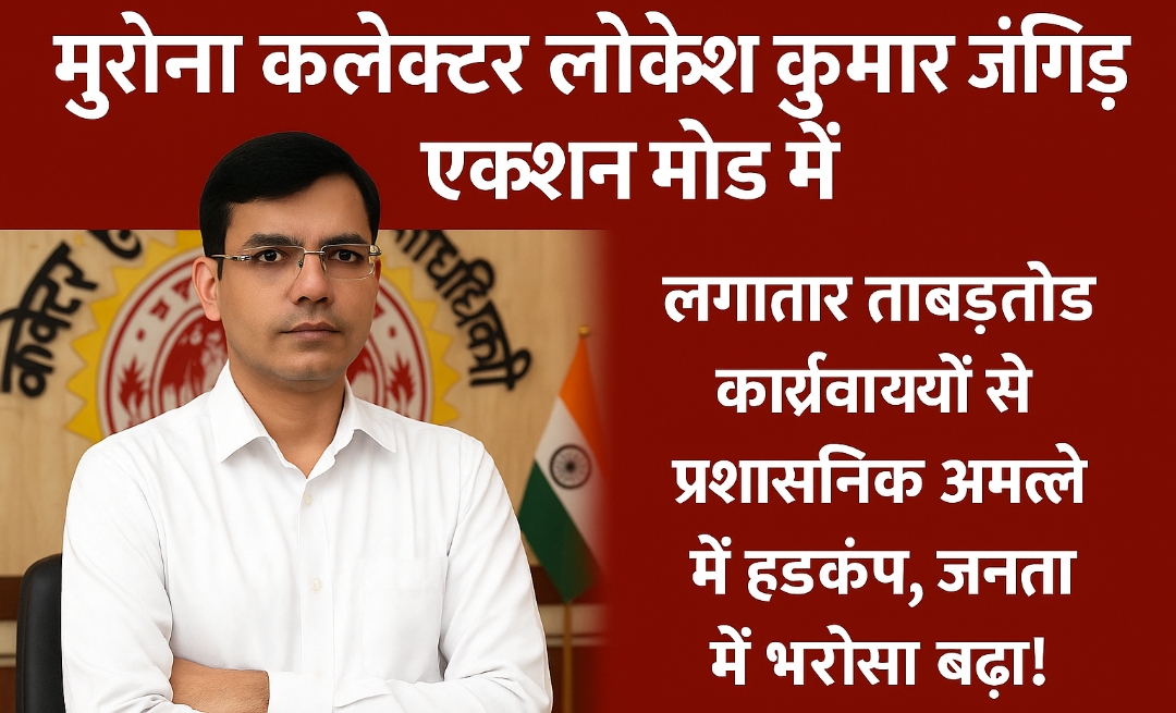 मुरैना 24 नवंबर 2025। जिले में कलेक्टर लोकेश कुमार जांगिड़ इन दिनों पूरी तरह एक्शन मोड में हैं। निरीक्षण, वीडियो कॉलिंग, जनसुनवाई और विभिन्न शिकायतों पर त्वरित कार्रवाई ने पूरे प्रशासनिक ढांचे में भूचाल ला दिया है। लगातार हो रही ताबड़तोड़ कार्रवाई से जहां अधिकारी-कर्मचारियों में हड़कंप मचा हुआ है, वहीं आम जनता कलेक्टर की सक्रियता से बेहद संतुष्ट और सुरक्षित महसूस कर रही है।