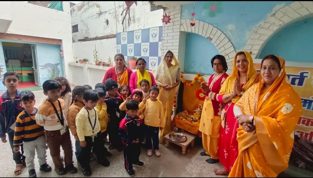 इसी पावन अवसर पर आर्यावर्त सेना महिला मोर्चा द्वारा विज किड्स इंटरनेशनल स्कूल में अध्ययनरत नन्हे विद्यार्थियों के साथ मां सरस्वती की विधिवत पूजा, वंदना एवं सांस्कृतिक कार्यक्रम का आयोजन किया गया। बच्चों ने पूरे श्रद्धा भाव से पूजा में सहभागिता की, जिससे वातावरण भक्तिमय एवं उल्लासपूर्ण हो उठा। पूजन उपरांत बच्चों को लड्डू, गजक एवं टॉफी वितरित कर प्रेम, सेवा और सौहार्द का संदेश दिया गया। इस आयोजन का उद्देश्य बच्चों को भारतीय संस्कृति, शिक्षा और संस्कारों से जोड़ना रहा।