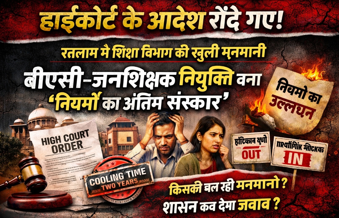 रतलाम 26 जनवरी 2026। रतलाम जिले में अकादमिक खंड समन्वयक (बीएसी) और जनशिक्षकों की नियुक्ति को लेकर जारी आदेश अब प्रशासनिक लापरवाही नहीं बल्कि खुला नियम-विरोध और न्यायिक अवहेलना बन चुका है।
