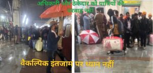 संवाददाता ने स्टेशन का जायज़ा लिया तो दृश्य शर्मसार करने वाला था। जिस देश ने एक दिन पहले ही दुनिया को विकास और शक्ति का प्रदर्शन किया, उसी देश के एक ऐतिहासिक और सामरिक महत्व के शहर में रेल यात्री बरसते पानी में ट्रेन का इंतज़ार कर रहे थे। प्लेटफॉर्म पर न तो पर्याप्त शेल्टर था और न ही सुरक्षित आवागमन की व्यवस्था। यात्री भीगते हुए ट्रेनों में छतरी लेकर चढ़ने-उतरने को विवश थे। यात्रियों की मजबूरी का फायदा उठाने में रेलवे के अधिकारी और कर्मचारी भी पीछे नहीं दिखे। कोई भी जिम्मेदार अधिकारी यात्रियों की दुर्दशा को लेकर गंभीर नजर नहीं आता। यात्रियों को हो रहीं लगातार असुविधा और समस्या के समाधान हेतु वैकल्पिक इंतजाम किए जाने पर जोर दिया मगर प्रशासन आंख मूंदे बैठा है और पुनर्विकास के नाम पर यात्री ठगे जा रहे हैं।