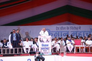 भोपाल 24 फरवरी 2026। अटल पथ पर ‘अमेरिका और भारत ट्रेड डील समझौते के विरोध में कांग्रेस किसान महाचौपाल’ के अंतर्गत एक विशाल जनसभा का आयोजन किया गया।