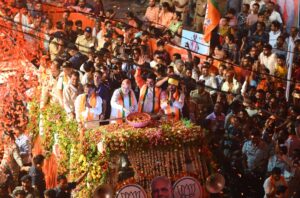 केन्द्रीय गृहमंत्री श्री अमित शाह जी के रोड शो के दौरान यात्रा मार्ग की दोनों तरफ की सड़कें भगवामय हो गयी। आम जनता ने घरों से पुष्पवर्षा कर मोदी-मोदी के गगनभेदी नारों के साथ श्री अमित शाह जी का स्वागत किया। इस दौरान यात्रा मार्ग में विभिन्न समाज के नागरिकों द्वारा मंच लगाकर स्वागत किया, वहीं श्री अमित शाह जी ने उनका अभिवादन किया।