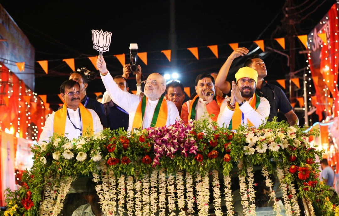 गृह मंत्री के स्वागत के लिए उमड़ा जनसैलाब, भगवामय हुई यात्रा मार्ग की सड़कें