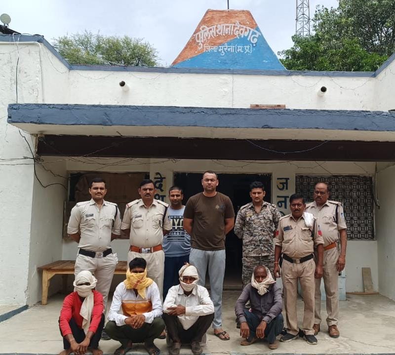 मुरैना। देवगढ थाना पुलिस ने 48 घंटे में हत्या के प्रयास मामले में फरार चल रहे चार आरोपियों को गिरफ्तार करने में सफलता हासिल की है। प्राप्त जानकारी के अनुसार पुलिस अधीक्षक शैलेंद्र सिंह चौहान एवं अतिरिक्त पुलिस अधीक्षक अरविंद ठाकुर के निर्देशन में देवगढ़ थाना प्रभारी अरुण सिंह कुशवाह को मुखबिर से सूचना मिली छिनवरा गांव में 48 घंटे पूर्व हुए विवाद के फरार चार आरोपी छिनवरा गांव की नहर की पुलिया के पास अवैध हथियार लेकर घूम रहे हैं। थाना प्रभारी ने मुखबिर की सूचना से टीम के साथ छिनवरा नहर की पुलिया पर जाकर देखा तो हत्या के प्रयास के मामले में फरार चल रहे चारों आरोपी पुलिस को देखकर भागने लगे, जिसके बाद पुलिस ने चारों आरोपियों को गिरफ्तार कर नाम पता पूछा तो उन्होंने अपना नाम नारायण बघेल, मंगल बघेल, पूरन बघेल, वैजनाथ बघेल बताया। वहीं पुलिस ने आरोपियों के कब्जे से अधिया बंदूक भी जप्त की है।