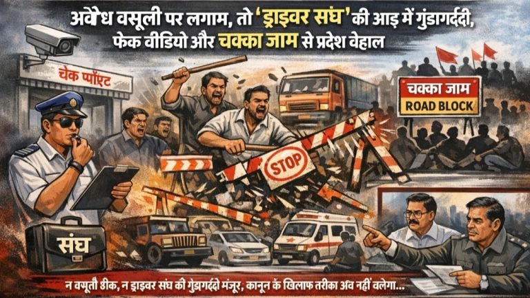 कहीं अवैध उगाही, तो कहीं फेक वीडियो से ट्रांसपोर्ट विभाग को बदनाम करने की साजिश’ ‘ड्राइवर संघ’ के नाम पर गुंडागर्दी और चक्का जाम का आतंक भोपाल/ग्वालियर 19 दिसंबर 2025 * विशेष रिपोर्ट। मध्य प्रदेश में चेक प्वाइंटों पर अवैध वसूली को लेकर सरकार और परिवहन विभाग द्वारा शुरू की गई सख्ती का मिश्रित असर अब…