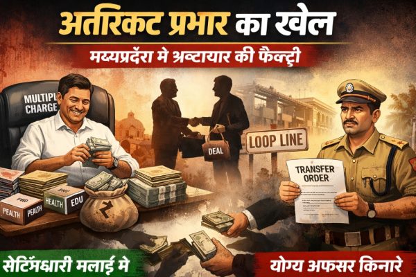 प्रभार की आड़ में लूट का तंत्र: योग्य बाहर, सेटिंगधारी भीतर.. बृजराज सिंह, 14 जनवरी 2026। मध्यप्रदेश के प्रशासनिक ढांचे में प्रभार और अतिरिक्त प्रभार की व्यवस्था आज सुशासन नहीं, बल्कि कुप्रशासन और भ्रष्टाचार की नर्सरी बन चुकी है। आरोग्य, सुपात्र और योग्य अधिकारियों को उनके कौशल के अनुरूप जिम्मेदारी न मिल पाने से जहां…